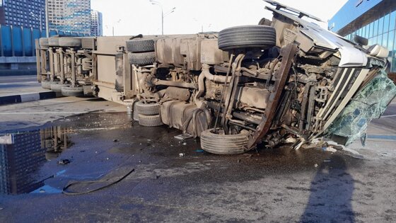 Сегодня утром возле станции метро “Котельники” на Новорязанском шоссе опрокинулась фура. Она выехала с проезжей части на парковку рядом с одним из автомобильных центров. Свидетелем ДТП стал корреспондент издания “Вести Подмосковья”.