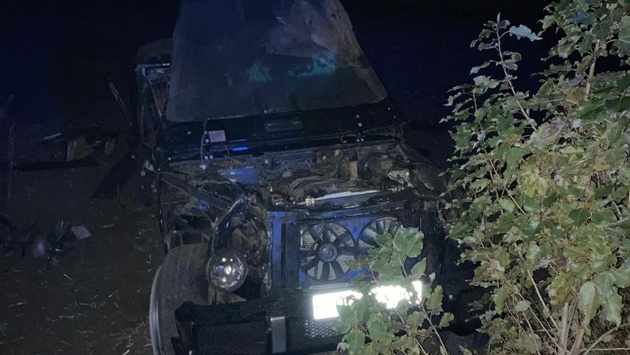 У внедорожника оторваны задний мост вместе с колесами и пластиковый обвес.