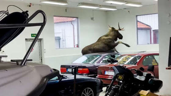 В Швеции ворвавшийся в салон классических автомобилей BMW лось разбил две дорогие машины. Об этом сообщает motor1.com. Отмечается, что инцидент произошел, когда генеральный директор компании по продаже раритетных автомобилей Виктор Ортегрен пошел на склад салона. Находясь там, он увидел, как в помещение ворвался лось и начал бить передними копытами по недавно восстановленному автомобилю BMW 850i. Животное повредило капот, а также проделало дыру в передней панели. Кроме того, пострадала еще одна машина. После того, как лось разбил два раритетных автомобиля BMW, он спокойно вышел на улицу и скрылся в лесу. Директор салона расстроен произошедшим, но рад, что никто из людей не пострадал. До этого в испанском Песагеро мужчина с сыном ехали на фестиваль в соседнюю деревню, когда неожиданно на трассу выбежал медведь. Автомобилист остановился, чтобы пропустить хищника, но неожиданно зверь набросился на машину. Совершив несколько неудачных атак, медведь скрылся в кустах, водитель и пассажир не пострадали. По словам местных жителей, хищники все чаще стали выходить к людям, медведи громят пасеки и уничтожают скот у местных фермеров.