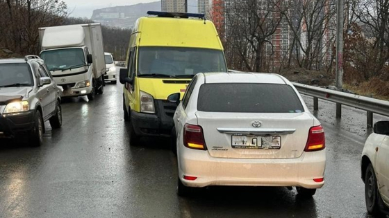 Машина скорой попала в лобовое ДТП во Владивостоке