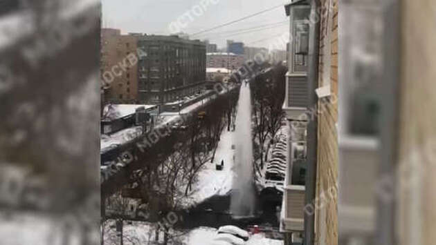 "Осторожно, Москва": фонтан в три этажа забил из-под земли на Люсиновской