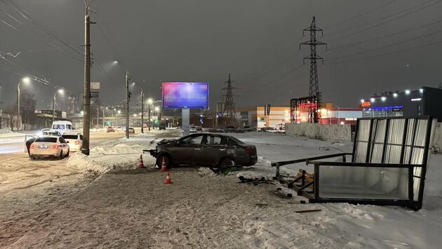 В среду, 11 декабря, около 20:50 на улице Новоажимова водитель автомобиля «Geely MK», 37-летняя женщина, не справилась с управлением и врезалась в остановку. Павильон рухнул навзничь.