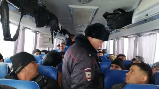 В Оренбуржье полицейские оказали помощь пассажирам сломанного автобуса с нелегальными мигрантами