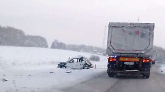 В Красноярском крае на видео попало лобовое столкновение авто Toyota и Lada