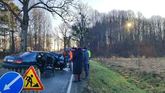 В Багратионовском районе легковушка врезалась в прицеп дорожных рабочих, пострадала девочка полутора лет (фото)