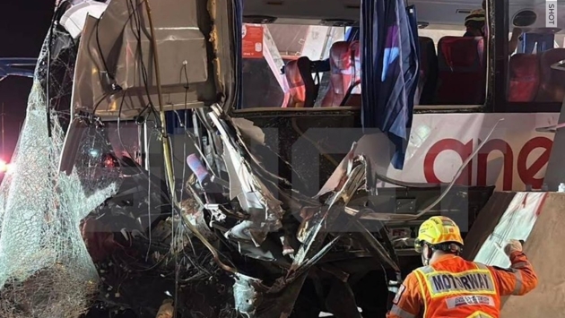 Автобус столкнулся с автомобилем Toyota Fortuner, после чего врезался в бетонное ограждение. Удар пришелся на переднюю часть и левую сторону. Сильные повреждения получило лобовое стекло. Информации о причинах и обстоятельствах аварии нет. На месте ДТП работают экстренные службы.