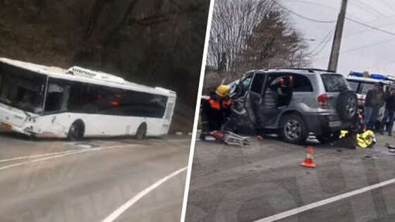 В поселке Лоо (городской округ Сочи) водитель кроссовера Toyota RAV4 врезался в автобус на встречной полосе. Об этом сообщает Telegram-канал "ЧП Сочи". Авария произошла на федеральной трассе "Джубга - Сочи". "По предварительной информации, водитель автомобиля, не убедившись в безопасности своего маневра, выехал на полосу встречного движения, где допустил столкновение с двигающимся во встречном направлении автобусом", - отмечается в сообщении. Пассажиры автобуса в аварии не пострадали, водителю Toyota выжить не удалось. На опубликованных фото с места происшествия видно, что удар пришелся на левую сторону кабины автобуса, у него разбито окно кабины водителя. Кроссовер после удара об автобус врезался в ограждение дороги. В районе места происшествия образовалась крупная пробка.