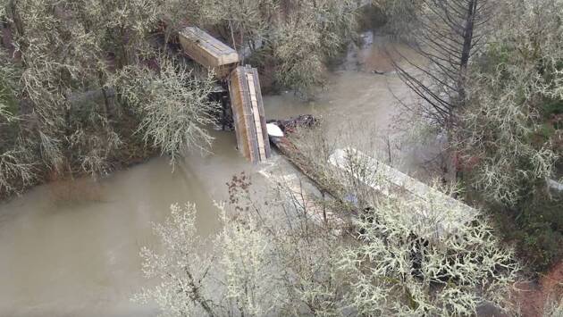 В США под поездом обрушился эстакадный мост, и в реку попали химикаты, сообщает kptv.com со ссылкой на железнодорожную компанию Portland & Western Railroad (PNWR).