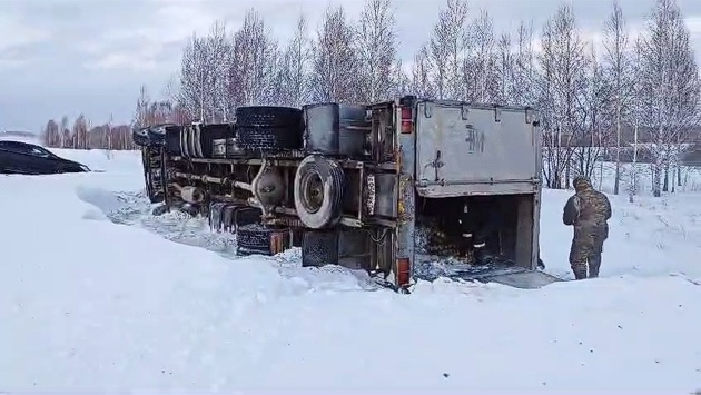 По данным ведомства, грузовики съехали с дороги в условиях плохой видимости между наукоградом Кольцово и селом Плотниково. Одна из машин опрокинулась на бок.