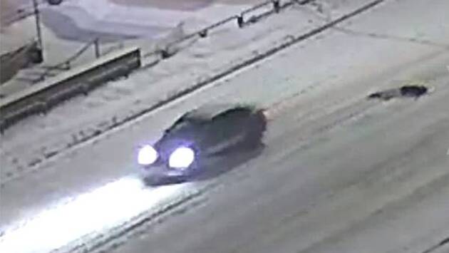 На представленном видеоролике видно, как машина двигается по заснеженной трассе. Внезапно из салона на дорогу падает пассажирка. Водитель, проехав несколько метров, останавливается и возвращается назад. Мужчина бежит к пострадавшей, а затем уносит ее в автомобиль.