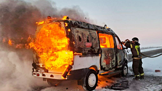 Автомобиль санитарной службы вспыхнул во время движения на трассе в Иркутской области.