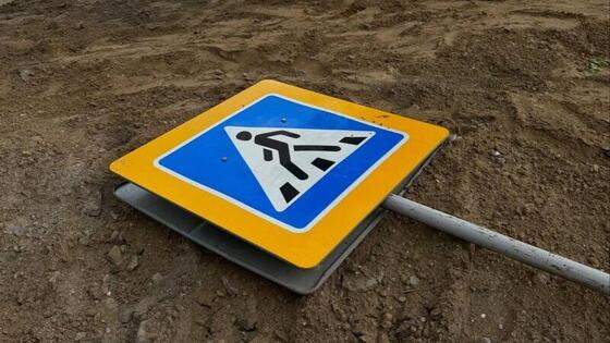 Автомобиль снес дорожный знак в центре Читы