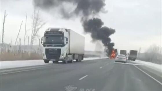 Грузовик сгорел на трассе «Иртыш» под Новосибирском