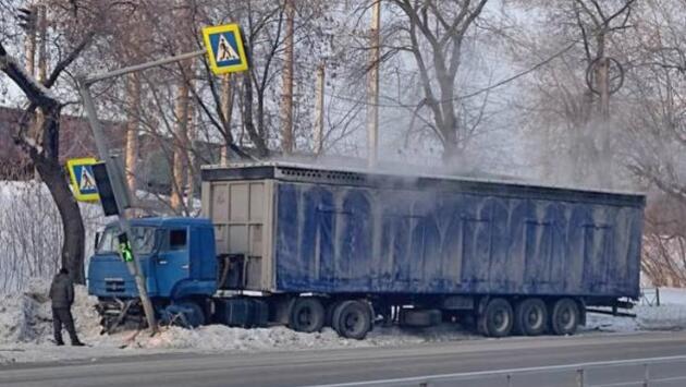 По словам очевидцев, на пересечении улиц Эйхе и Первомайской водитель фуры не справился с управлением и влетел в светофорную опору. В результате аварии столб наклонился, грузовик получил значительные повреждения.