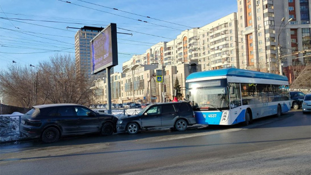 На встречной полосе произошло столкновение Porsche Cayenne с автомобилем Lexus, за рулем которого находился мужчина 1976 года рождения. Удар оказался настолько сильным, что Porsche Cayenne продолжил движение и совершил повторное столкновение с автомобилем Subaru, под управлением мужчины 1990 года рождения. В результате цепной реакции автомобиль Subaru, в свою очередь, столкнулся с троллейбусом, которым управлял мужчина 1988 года рождения.