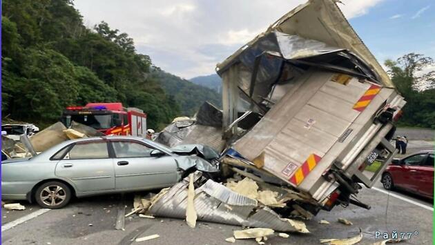 В прошлое воскресенье, 30 марта на малазийском шоссе, недалеко от города Бентонг, перевернувшийся грузовик врезался в четыре автомобиля.