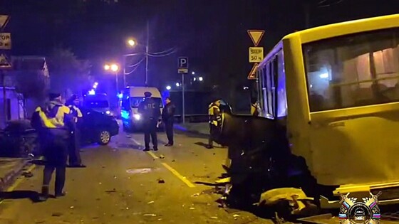 Авария произошла примерно в 01:50 часов. 32-летний водитель иномарки не выбрал безопасную скорость и на скорости протаранил припаркованный автобус ПАЗ. После этого легковушка влетела в дерево.