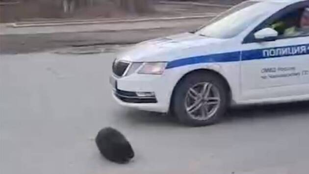В городе Чайковский Пермского края на дорогу выбежал бобр, и полицейская машина отогнала его к обочине. Противостояние напуганного животного с правоохранителями попало на видео, запись публикует Telegram-канал Mash.