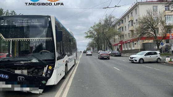 В Уфе рейсовый автобус протаранил легковушку и попал на видео