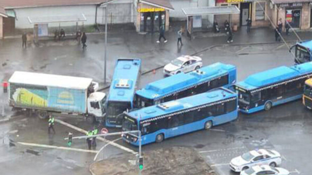 В Москве грузовой автомобиль с мёртвым водителем столкнулся с двумя автобусами
