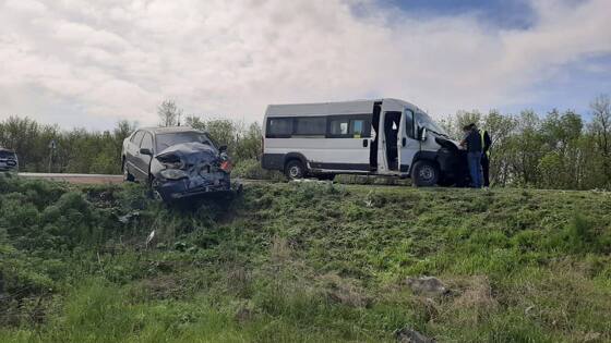 Под Оренбургом микроавтобус столкнулся с легковушкой