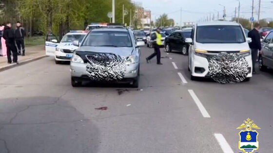 Пострадавшую госпитализировали с тяжелыми травмами. На место ДТП прибыли сотрудники Госавтоинспекции, которые зафиксировали обстоятельства происшествия. На опубликованных кадрах видны следы крови на асфальте перед Lexus, у автомобиля смят капот с левой стороны и повреждена фара. У стоящего рядом минивэна Honda разбито боковое стекло.