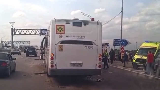 В Подмосковье автобус врезался в большегрузный автомобиль, сообщает Telegram-канал «Типичные Бронницы».