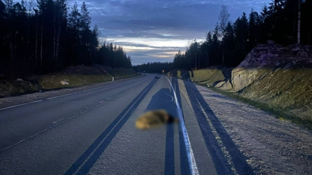 Косолапый, оказавшийся на проезжей части, попал под колеса внедорожника. Судя по снимкам с места происшествия, это был не слишком большой молодой медведь. Травмы, полученные им при столкновении, оказались смертельны.