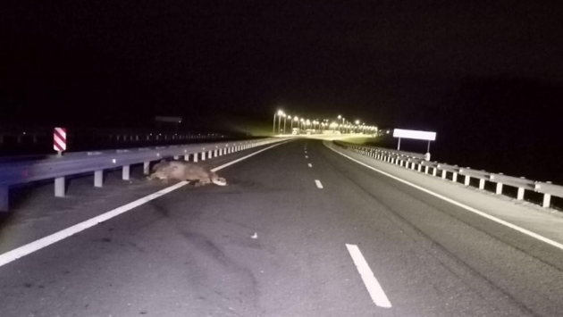 – Неустановленный водитель управляя неустановленным автомобилем совершил наезд на дикое животное (лось), после чего скрылся с места происшествия, – сказали в ГАИ.