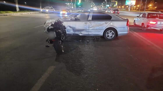 Этой ночью в Оренбурге легковушка столкнулась с мотоциклом, есть пострадавший