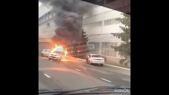 В Курске на Радищева столкнулись и загорелись два автомобиля