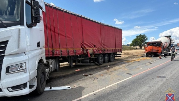 Под Волгоградом на трассе столкнулись КамАЗ и бетономешалка