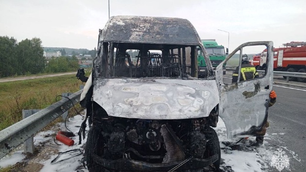 В Башкирии на трассе загорелся автобус с пассажирами