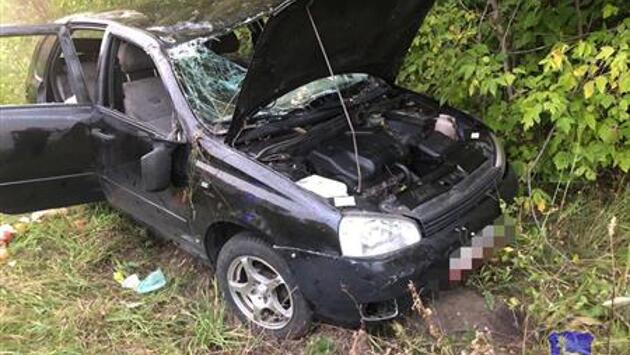 Под Тольятти Lada Kalina слетела с трассы и перевернулась
