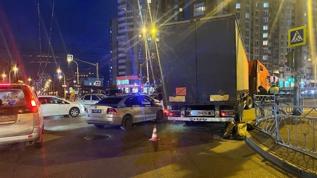 Смертельное ДТП случилось вечером 1 октября на улице Советской в Екатеринбурге. Фура зацепила пешехода, стоявшего на поребрике.