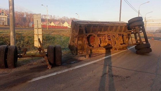 Сотрудники Госавтоинспекции установили, что по трассе передвигался грузовой автомобиль с прицепом. Водитель не справился с управлением, перевозимый в прицепе уголь высыпался на дорогу, создав этим неровный участок трассы.