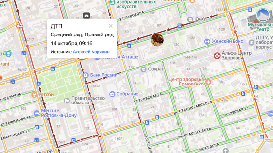 Ростовская область, 14 октября 2025, DON24.RU. В центре Ростова произошло ДТП на пересечении улицы Садовой и проспекта Соколова, что вызвало затор. Об этом сообщает газета «Молот». «Два легковых автомобиля не поделили перекресток возле здания областного правительства. Пострадавших нет», – пишет источник. По данным «Яндекс.Карт», на участке дороги в данный момент фиксируется пробка в шесть баллов.
