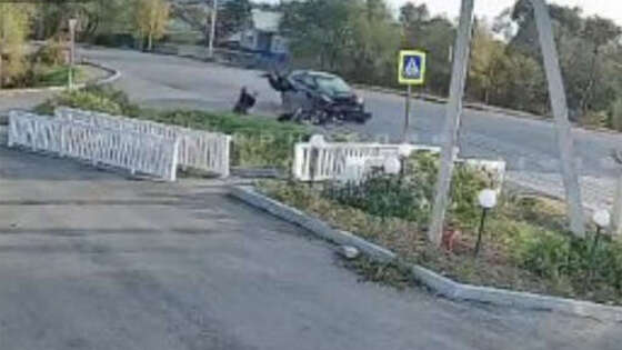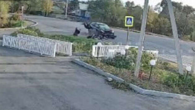 В Приморье на видео попало, как мотоцикл с людьми на скорости влетел в авто
