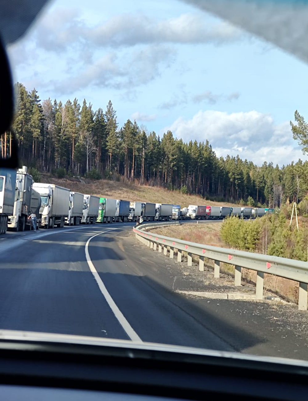 Обстановка на федеральной трассе в Иркутской области, где сегодня утром произошло ДТП с семью большегрузами, стала еще более напряженной - объездную дорогу перегородил автовоз.