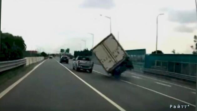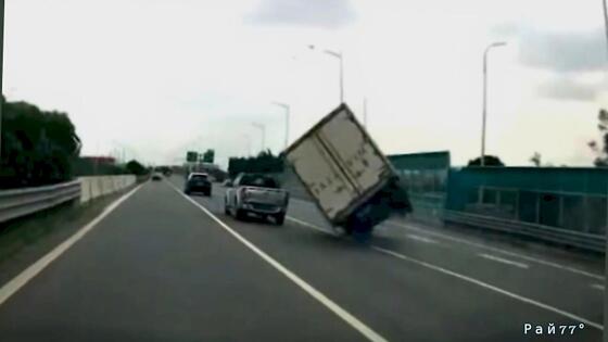 Крайне неудачное перестроение автофургона попало на видео в КНР