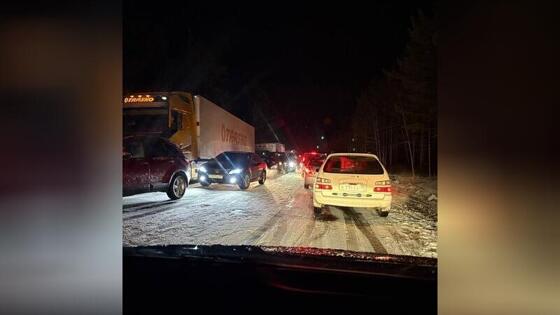 Огромная пробка сковала федеральную трассу. Об этом корреспонденту ZAB.RU сообщили очевидцы.
