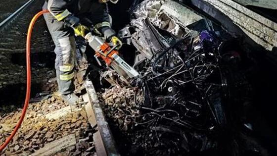 Машинист поезда применил экстренное торможение, но расстояние было недостаточным, и столкновения избежать не удалось. Судя по фото с места происшествия, машина была практически полностью раздавлена и оказалась под железнодорожной платформой.