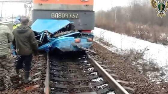Поезд смял в лепешку ВАЗ на железнодорожном переезде под Красноярском