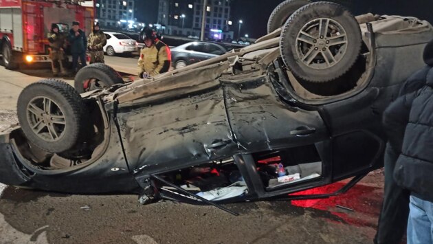 От удара одно из автомобилей перевернулось на крышу. В результате аварии два человека обращались за медицинской помощью.