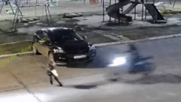 На кадрах видно, как двое детей бегают вокруг машины на парковке у дома. В какой-то момент один из них выбегает из-за авто, когда в его сторону на полной скорости мчится водитель питбайка. Он сбивает мальчика и прокатывает его несколько метров, а затем уезжает.
