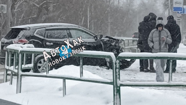 В кузбасском городе автомобиль влетел в дорожное ограждение. Очевидцы поделились фотографиями с места.