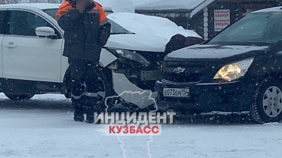 Вторая авария выглядит серьёзнее и произошла, судя по всему, на трассе. Здесь участниками стали автомобиль такси и ещё одна легковушка. У такси повреждён левый бок, а вторую машину развернуло и наполовину выбросило в придорожный сугроб. На месте работают правоохранители и пожарные.
