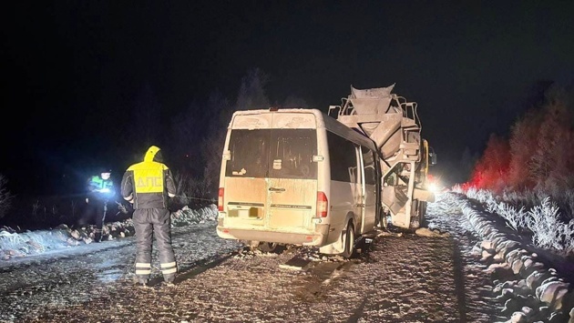 При столкновении маршрутки с бетономешалкой под Иркутском пострадали 11 человек