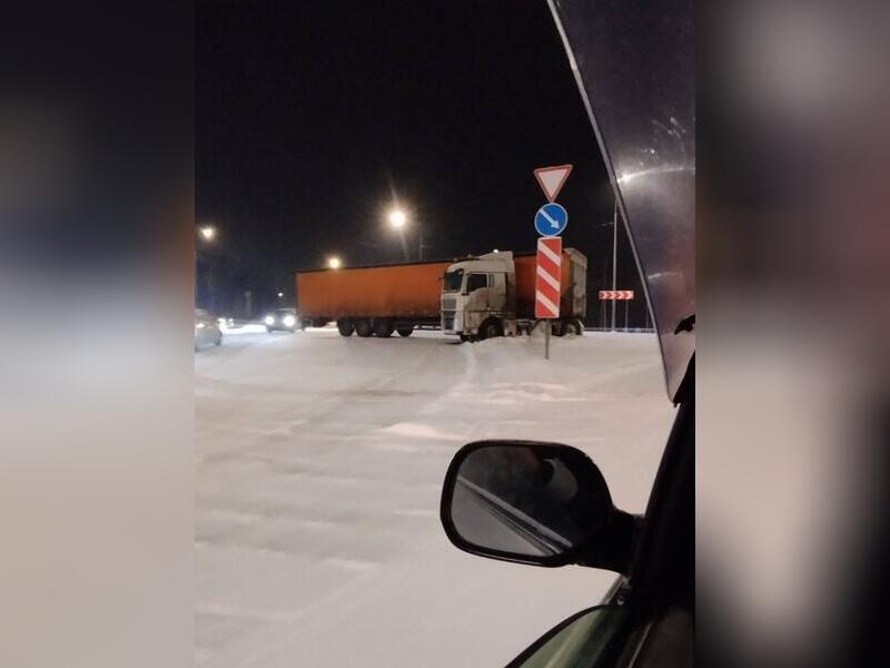 Помимо этого, местные жители отмечают, что около Антипихи тоже развернуло большегруз — он въехал в знак.