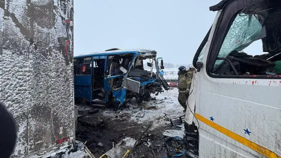 Пять пассажиров ПАЗ скончались от полученных травм на месте происшествия, водитель автобуса умер в карете скорой помощи.